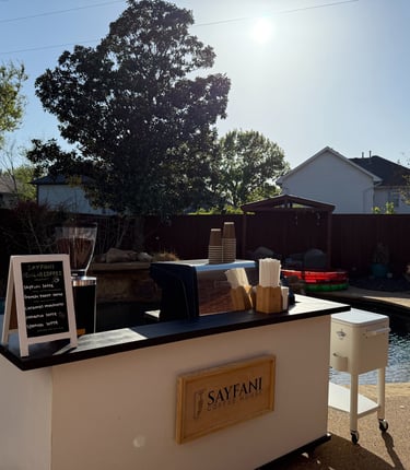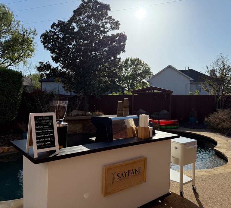 At Sayfani Coffee Cart, we bring exceptional coffee to your events, from weddings to graduations. Let us make your occasion memorable with our delightful brews and friendly service.